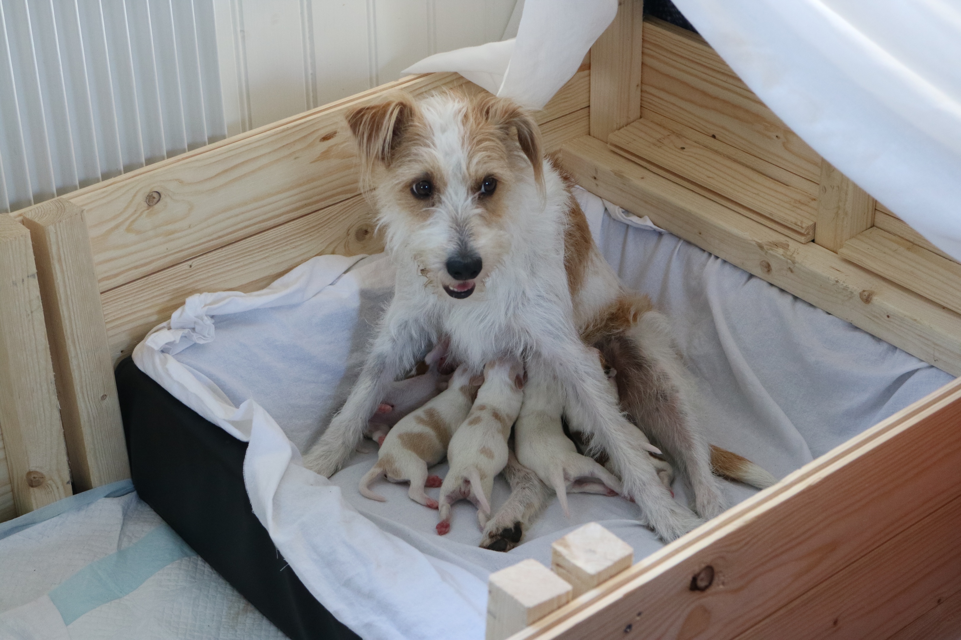 En liten uppfödning av Kromfohrländer och Labrador retriver