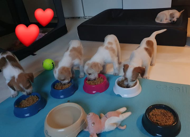 En liten uppfödning av Kromfohrländer och Labrador retriver