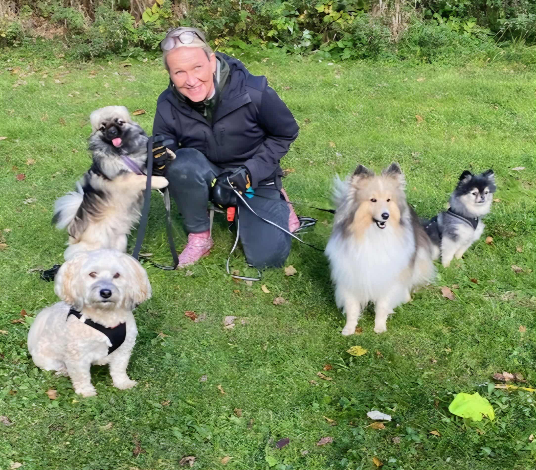 Just nu delar jag mitt liv med mina två egna hundar – Yazza, en 7-årig Kromfohrländer, och Ställa (Tillde), en 2-årig labrador. Vi träna just nu agility, specialsök, spår, personsök och vardagslydnad. Dessutom har jag daghunden Herman, också en labrador på 4 år, som ofta är med i verksamheten. (bilden på stenen)